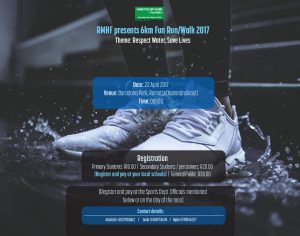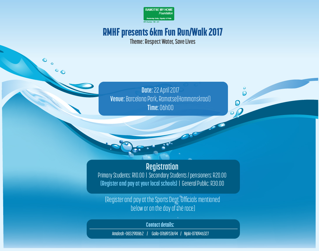The fun run will be held on 22 April 2017 at the Barcelona Park in Rmotse/Hammanskraal starting from 06:00 in the morning.