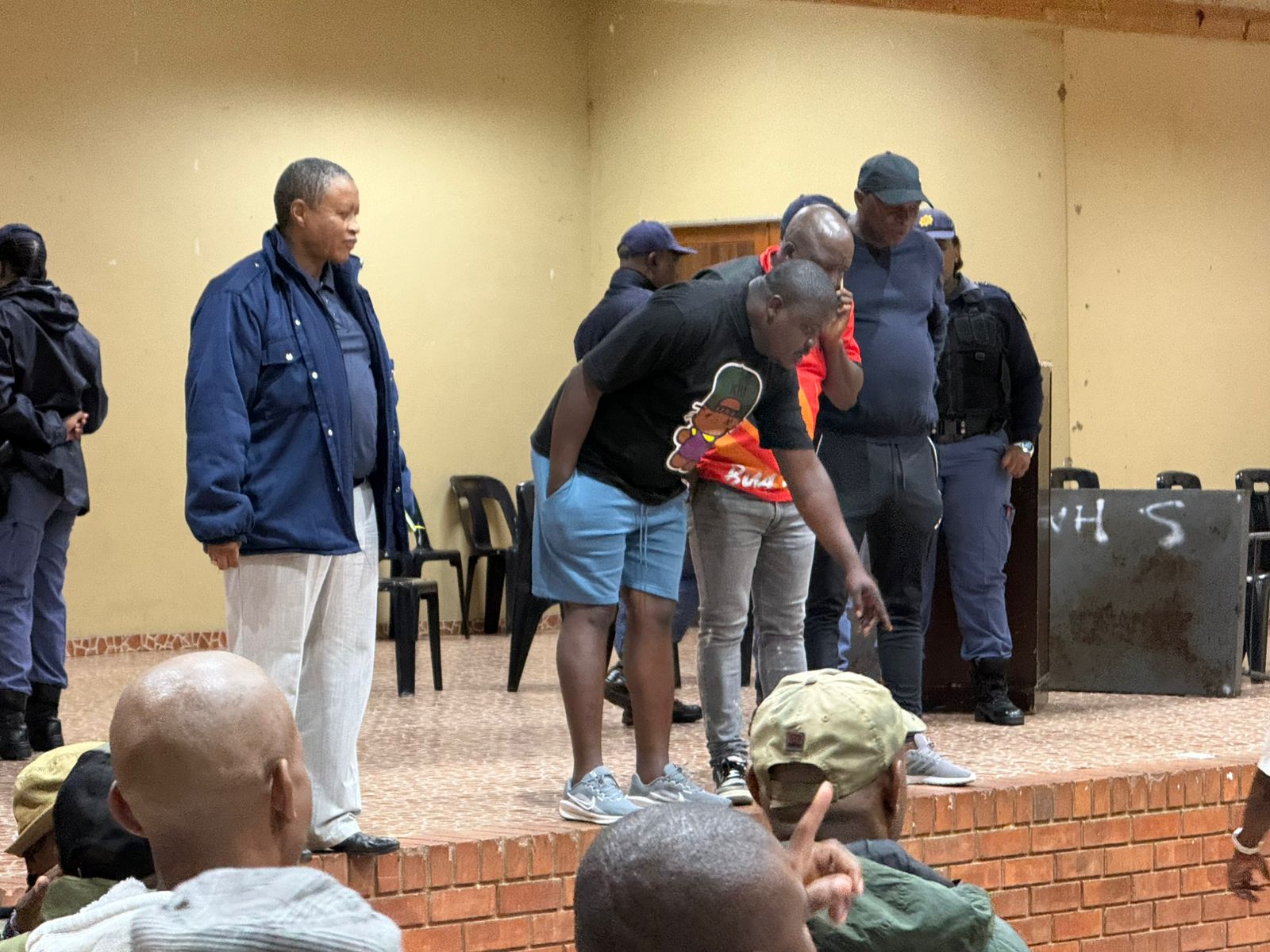 When he appealed for calm and asked residents to allow him to speak, the situation escalated rapidly. Angry community members charged toward the stage, destroying the podium and table settings. Delegates seated at the front were forced to flee as the crowd chased them out, bringing the meeting to an abrupt, chaotic end.